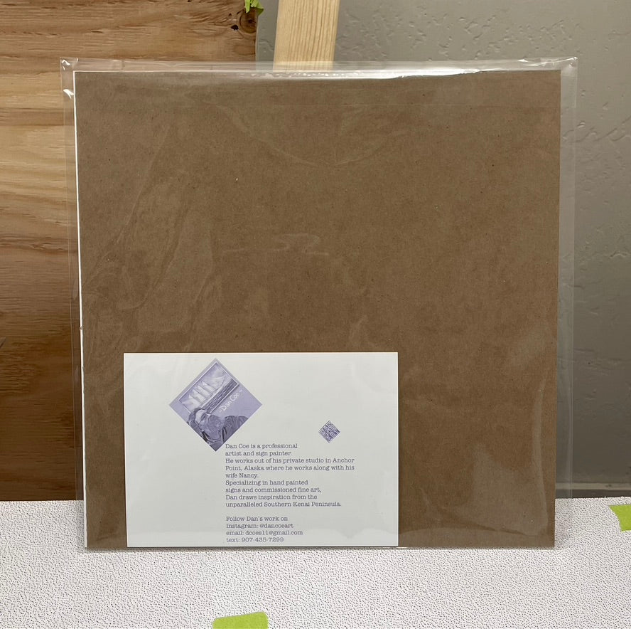 12”x12” ink jet on coated 16pt card stock. Each are individually signed and dated with the year. I have to say that I'm pleased with the print quality and detail of each one. They ship flat so no curls.