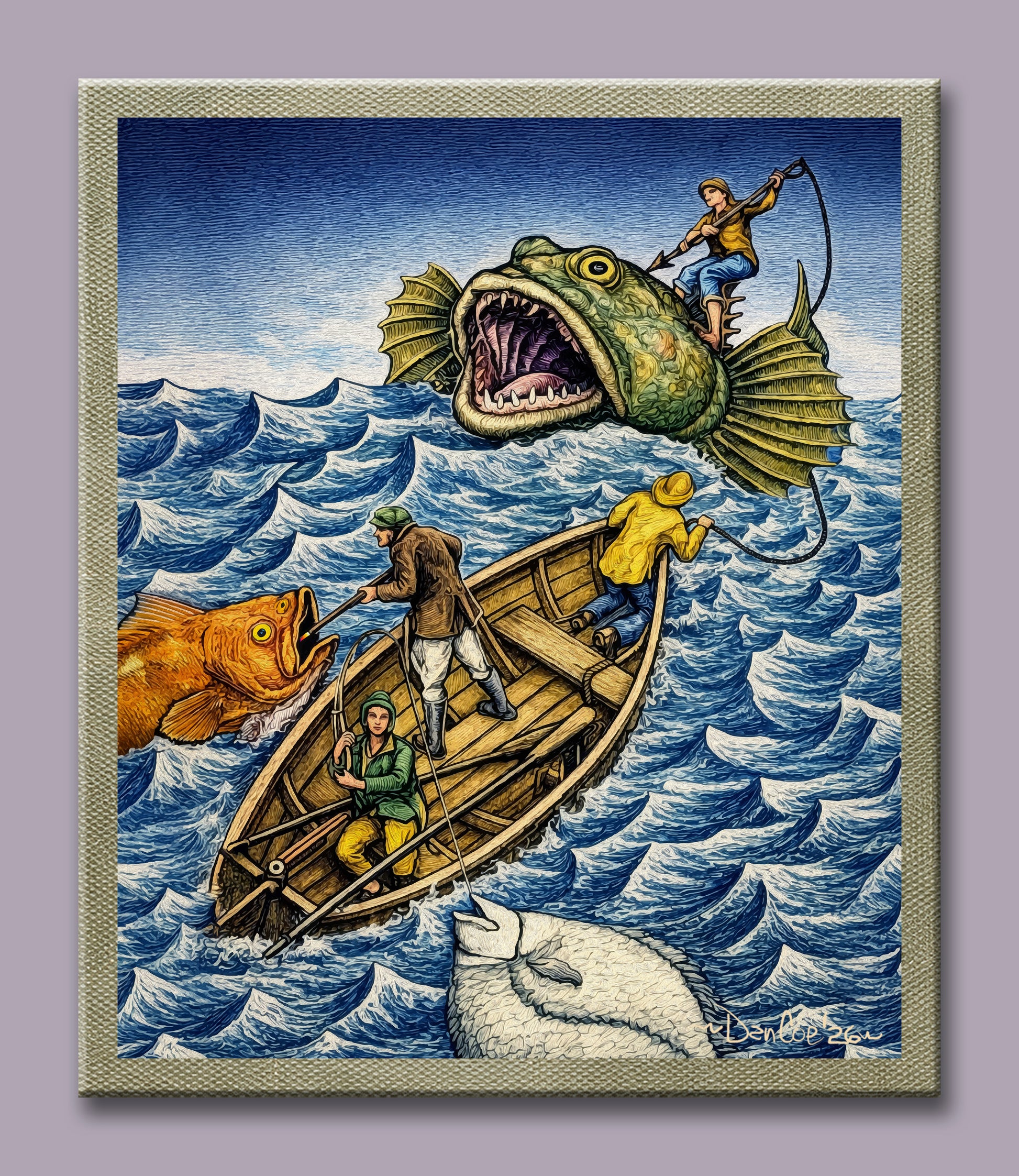 I cut my own stretcher bars, then using water based polymers affix the canvas print to 10 oz cotton during cotton duck canvas. Each boarder is then painted with the overall picture clear coated and signed.
