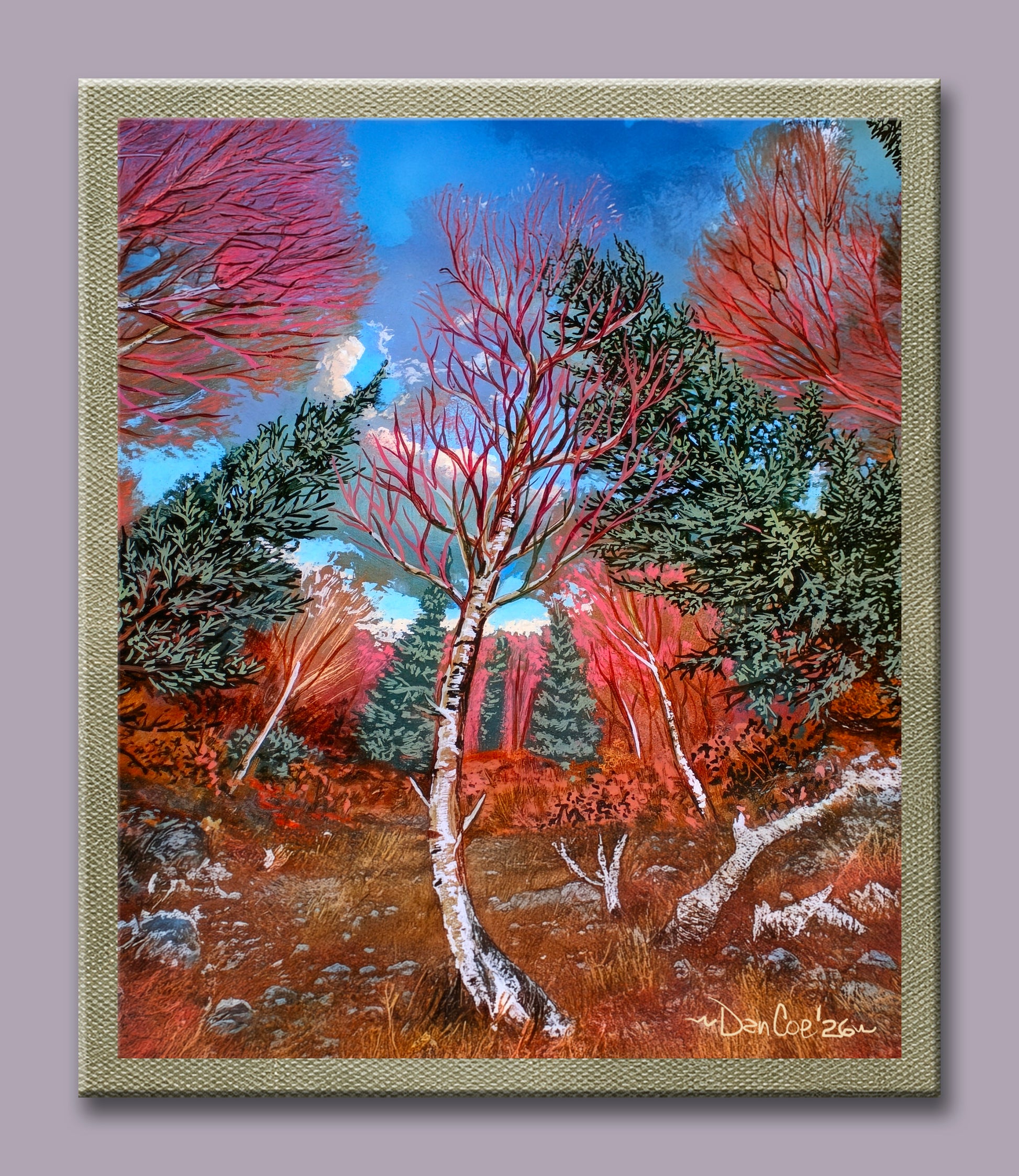 I cut my own stretcher bars, then using water based polymers affix the canvas print to 10 oz cotton during cotton duck canvas. Each boarder is then painted with the overall picture clear coated and signed.